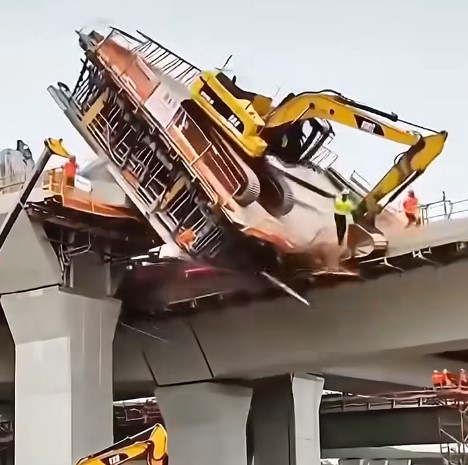 Cranes and rescue equipment were deployed as the highway’s structure began to fail. Thanks to rapid response protocols and training, the evacuation team managed to escape before the structure fully gave way.
