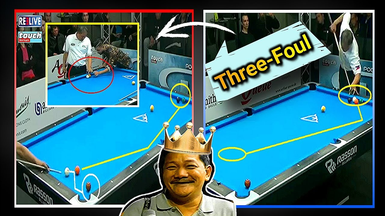 “three consecutive fouls” rule in 9-ball to gain an insurmountable advantage. This rule dictates that if a player commits three consecutive fouls without an intervening legal shot, the opponent automatically wins the rack.